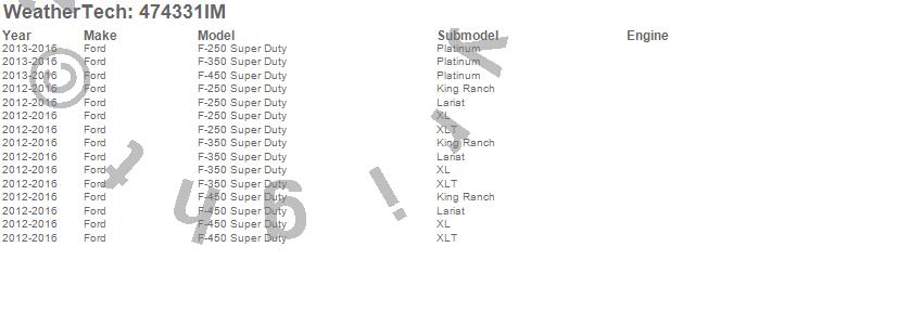 Below is an abbreviated list of applications for the FloorLiner HP.F-250 Super Duty, F-350 Super Duty, F-450 Super Duty, Ford, 2016, 2015, 2014, 2013, 2012