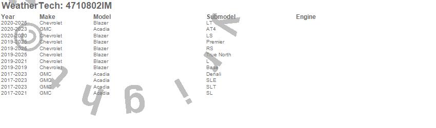 Below is an abbreviated list of applications for the FloorLiner HP.Acadia, Blazer, XT6, Cadillac, Chevrolet, GMC, 2026, 2025, 2024, 2023, 2022, 2021, 2020, 2019, 2018, 2017