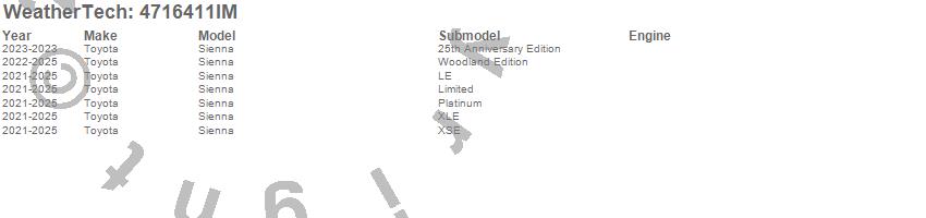 Below is an abbreviated list of applications for the FloorLiner HP.Sienna, Toyota, 2026, 2025, 2024, 2023, 2022, 2021