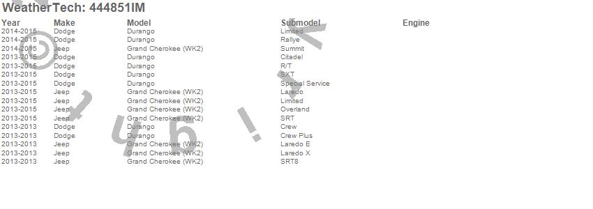Below is an abbreviated list of applications for the FloorLiner HP.Durango, Grand Cherokee (WK2), Dodge, Jeep, 2015, 2014, 2013