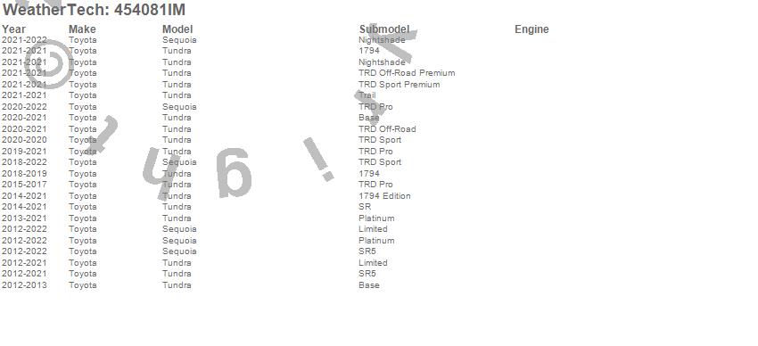 Below is an abbreviated list of applications for the FloorLiner HP.Sequoia, Tundra, Toyota, 2022, 2021, 2020, 2019, 2018, 2017, 2016, 2015, 2014, 2013, 2012
