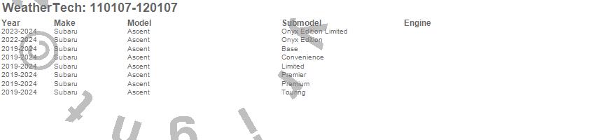 Below is an abbreviated list of applications for the MudFlap No-Drill DigitalFit MudFlap Kit.Ascent, Subaru, 2025, 2024, 2023, 2022, 2021, 2020, 2019