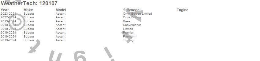 Below is an abbreviated list of applications for the MudFlap No-Drill DigitalFit.Ascent, Subaru, 2025, 2024, 2023, 2022, 2021, 2020, 2019