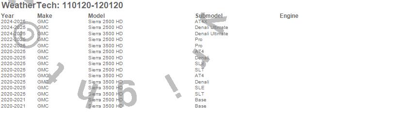 Below is an abbreviated list of applications for the MudFlap No-Drill DigitalFit MudFlap Kit.Sierra 2500 HD, Sierra 3500 HD, GMC, 2025, 2024, 2023, 2022, 2021, 2020