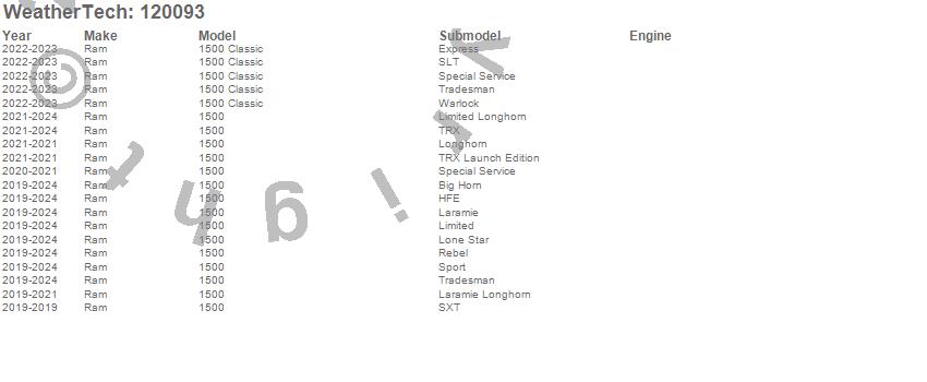 Below is an abbreviated list of applications for the MudFlap No-Drill DigitalFit.1500, 1500 Classic, Ram, 2024, 2023, 2022, 2021, 2020, 2019