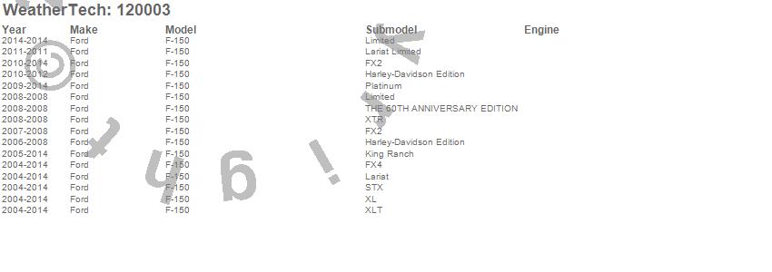 Below is an abbreviated list of applications for the MudFlap No-Drill DigitalFit.F-150, Ford, 2014, 2013, 2012, 2011, 2010, 2009, 2008, 2007, 2006, 2005, 2004