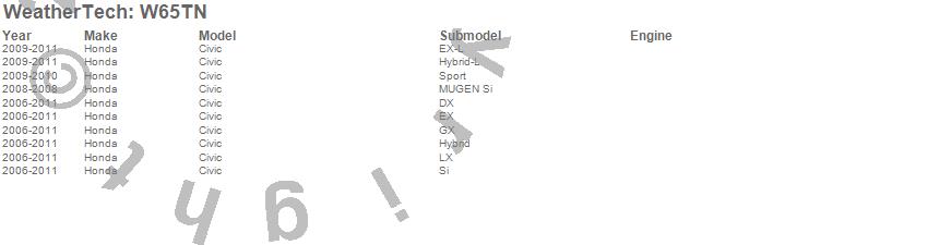 Below is an abbreviated list of applications for the All Weather Floor Mats.Civic, Honda, 2011, 2010, 2009, 2008, 2007, 2006