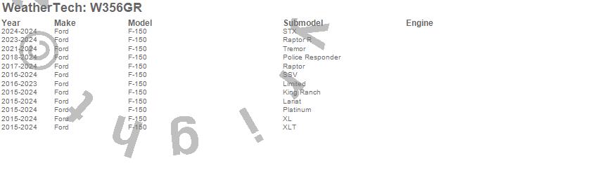 Below is an abbreviated list of applications for the All Weather Floor Mats.F-150, Ford, 2024, 2023, 2022, 2021, 2020, 2019, 2018, 2017, 2016, 2015