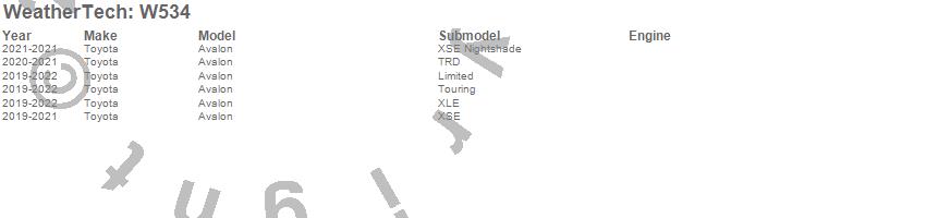 Below is an abbreviated list of applications for the All Weather Floor Mats.Avalon, Toyota, 2022, 2021, 2020, 2019