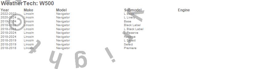 Below is an abbreviated list of applications for the All Weather Floor Mats.Navigator, Lincoln, 2024, 2023, 2022, 2021, 2020, 2019, 2018