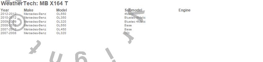 Below is an abbreviated list of applications for the All Weather Floor Mats.GL320, GL350, GL450, GL550, Mercedes-Benz, 2012, 2011, 2010, 2009, 2008, 2007