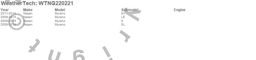 Below is an abbreviated list of applications for the All Weather Floor Mats.Murano, Nissan, 2014, 2013, 2012, 2011, 2010, 2009