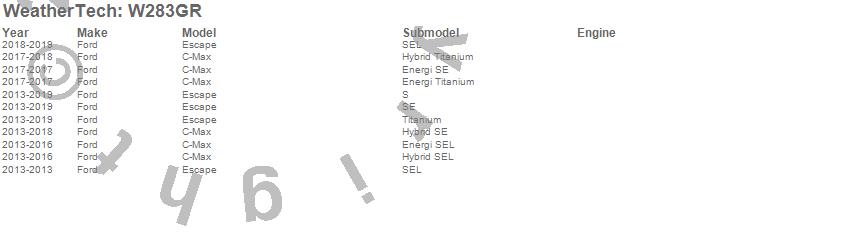 Below is an abbreviated list of applications for the All Weather Floor Mats.C-Max, Escape, Ford, 2019, 2018, 2017, 2016, 2015, 2014, 2013