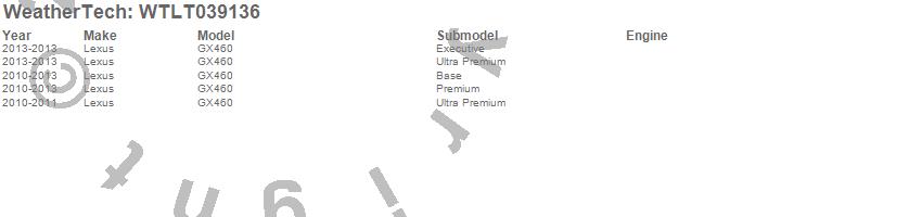 Below is an abbreviated list of applications for the All Weather Floor Mats.GX460, Lexus, 2013, 2012, 2011, 2010