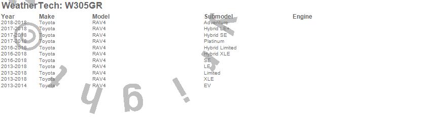 Below is an abbreviated list of applications for the All Weather Floor Mats.RAV4, Toyota, 2018, 2017, 2016, 2015, 2014, 2013