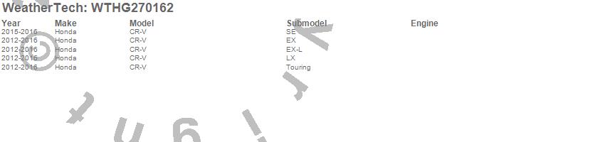 Below is an abbreviated list of applications for the All Weather Floor Mats.CR-V, Honda, 2016, 2015, 2014, 2013, 2012