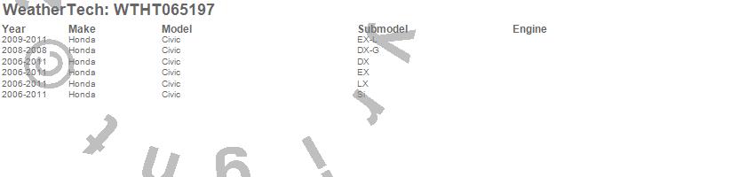 Below is an abbreviated list of applications for the All Weather Floor Mats.Civic, Honda, 2011, 2010, 2009, 2008, 2007, 2006