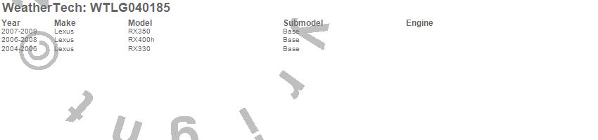 Below is an abbreviated list of applications for the All Weather Floor Mats.RX330, RX350, RX400h, Lexus, 2009, 2008, 2007, 2006, 2005, 2004