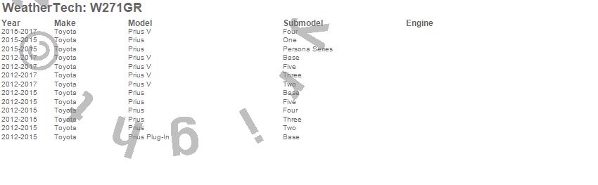 Below is an abbreviated list of applications for the All Weather Floor Mats.Prius, Prius Plug-In, Prius V, Toyota, 2017, 2016, 2015, 2014, 2013, 2012