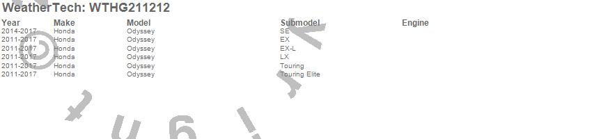 Below is an abbreviated list of applications for the All Weather Floor Mats.Odyssey, Honda, 2017, 2016, 2015, 2014, 2013, 2012, 2011
