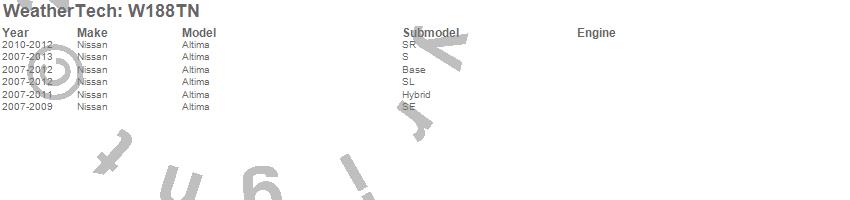 Below is an abbreviated list of applications for the All Weather Floor Mats.Altima, Nissan, 2013, 2012, 2011, 2010, 2009, 2008, 2007