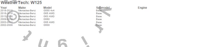 Below is an abbreviated list of applications for the All Weather Floor Mats.G500, G55 AMG, G550, G550 4x4, G63 AMG, G65 AMG, Mercedes-Benz, 2018, 2017, 2016, 2015, 2014, 2013, 2012, 2011, 2010, 2009, 2008, 2007, 2006