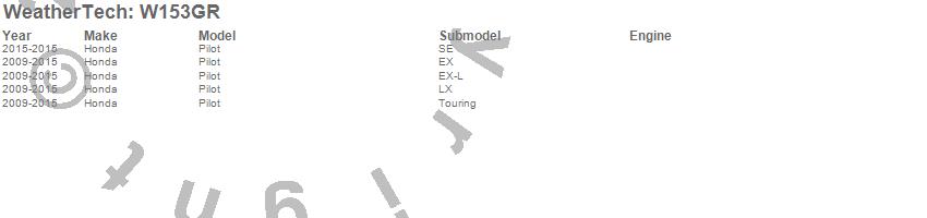 Below is an abbreviated list of applications for the All Weather Floor Mats.Pilot, Honda, 2015, 2014, 2013, 2012, 2011, 2010, 2009