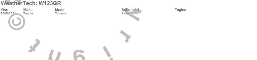 Below is an abbreviated list of applications for the All Weather Floor Mats.Tacoma, Toyota, 2011, 2010, 2009, 2008, 2007, 2006, 2005