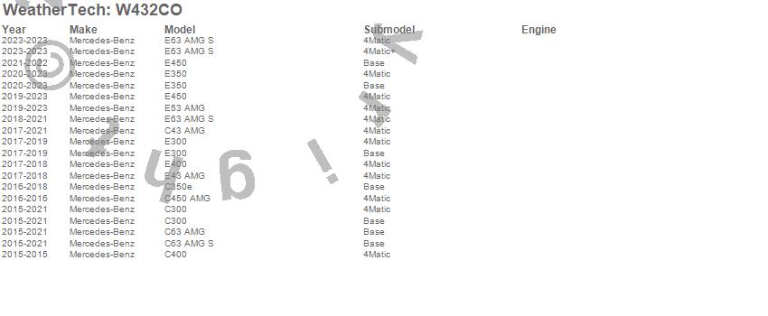 Below is an abbreviated list of applications for the All Weather Floor Mats.C300, C350e, C400, C43 AMG, C450 AMG, C63 AMG, C63 AMG S, E300, E350, E400, E43 AMG, E450, E53 AMG, E63 AMG S, Mercedes-Benz, 2023, 2022, 2021, 2020, 2019