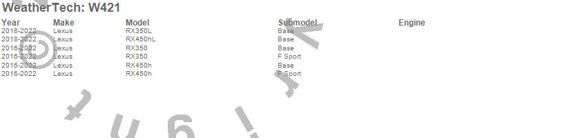 Below is an abbreviated list of applications for the All Weather Floor Mats.RX350, RX350L, RX450h, RX450hL, Lexus, 2022, 2021, 2020, 2019, 2018, 2017, 2016