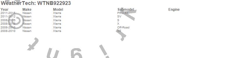 Below is an abbreviated list of applications for the All Weather Floor Mats.Xterra, Nissan, 2015, 2014, 2013, 2012, 2011, 2010, 2009, 2008