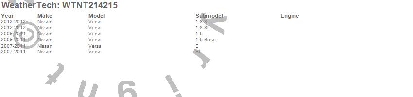 Below is an abbreviated list of applications for the All Weather Floor Mats.Versa, Nissan, 2012, 2011, 2010, 2009, 2008, 2007