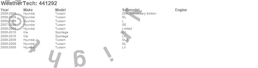 Below is an abbreviated list of applications for the FloorLiner DigitalFit.Sportage, Tucson, Hyundai, Kia, 2010, 2009, 2008, 2007, 2006, 2005