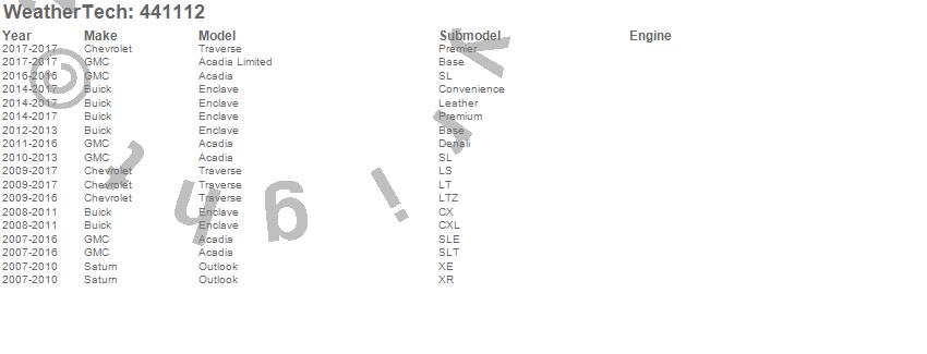 Below is an abbreviated list of applications for the FloorLiner DigitalFit.Acadia, Acadia Limited, Enclave, Outlook, Traverse, Buick, Chevrolet, GMC, Saturn, 2017, 2016, 2015, 2014, 2013, 2012, 2011, 2010, 2009, 2008, 2007
