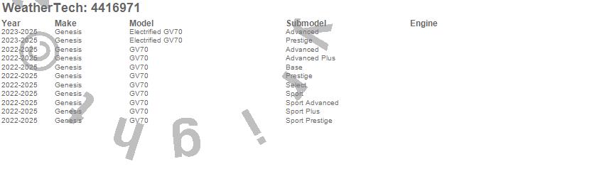 Below is an abbreviated list of applications for the FloorLiner DigitalFit.Electrified GV70, GV70, Genesis, 2025, 2024, 2023, 2022