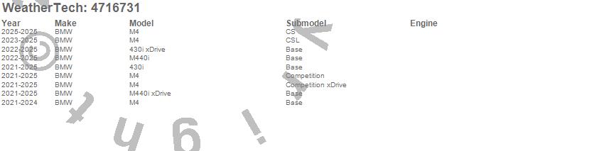 Below is an abbreviated list of applications for the FloorLiner DigitalFit.430i, 430i xDrive, M4, M440i, M440i xDrive, BMW, 2026, 2025, 2024, 2023, 2022, 2021