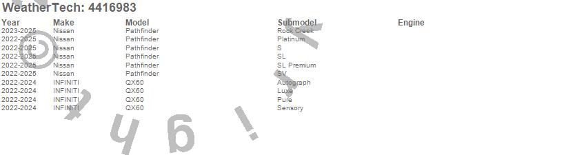 Below is an abbreviated list of applications for the FloorLiner DigitalFit.Pathfinder, QX60, INFINITI, Nissan, 2026, 2025, 2024, 2023, 2022