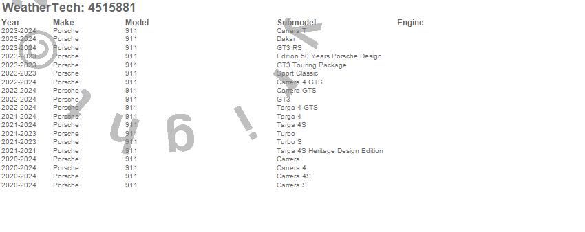 Below is an abbreviated list of applications for the FloorLiner DigitalFit.911, Porsche, 2025, 2024, 2023, 2022, 2021, 2020