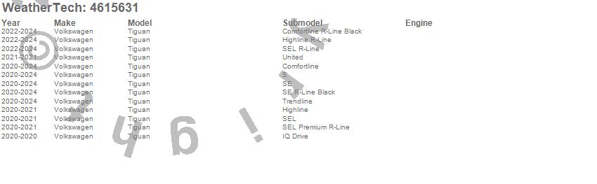 Below is an abbreviated list of applications for the FloorLiner DigitalFit.Tiguan, Volkswagen, 2024, 2023, 2022, 2021, 2020