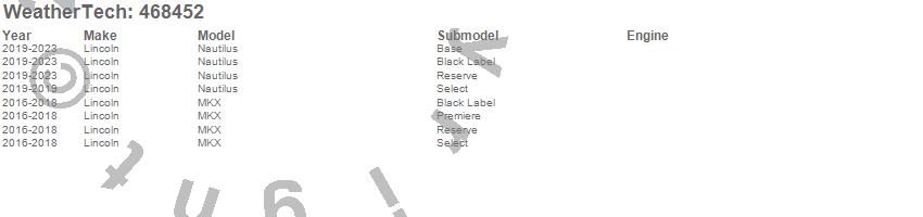 Below is an abbreviated list of applications for the FloorLiner DigitalFit.MKX, Nautilus, Lincoln, 2023, 2022, 2021, 2020, 2019, 2018, 2017, 2016