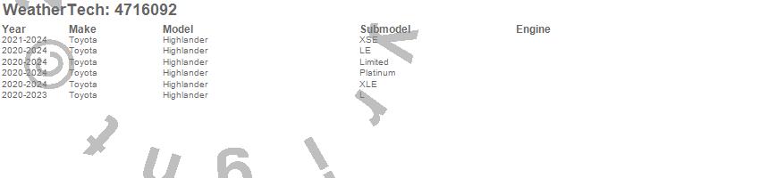 Below is an abbreviated list of applications for the FloorLiner DigitalFit.Highlander, Toyota, 2025, 2024, 2023, 2022, 2021, 2020