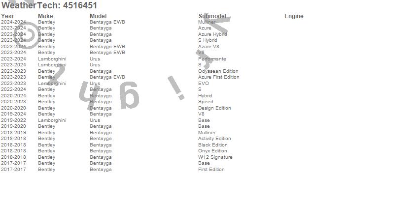 Below is an abbreviated list of applications for the FloorLiner DigitalFit.Bentayga, Bentayga EWB, Urus, Bentley, Lamborghini, 2025, 2024, 2023, 2022, 2021, 2020, 2019, 2018, 2017