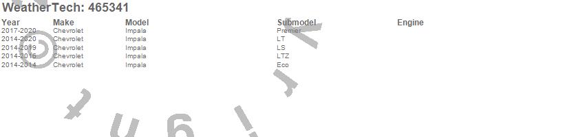 Below is an abbreviated list of applications for the FloorLiner DigitalFit.Impala, Chevrolet, 2020, 2019, 2018, 2017, 2016, 2015, 2014