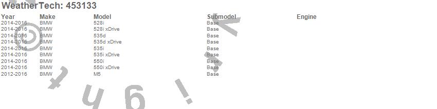 Below is an abbreviated list of applications for the FloorLiner DigitalFit.528i, 528i xDrive, 535d, 535d xDrive, 535i, 535i xDrive, 550i, 550i xDrive, M5, BMW, 2016, 2015, 2014, 2013, 2012, 2011