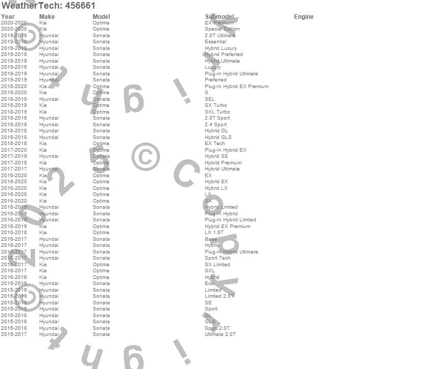 Below is an abbreviated list of applications for the FloorLiner DigitalFit.Optima, Sonata, Hyundai, Kia, 2020, 2019, 2018, 2017, 2016, 2015