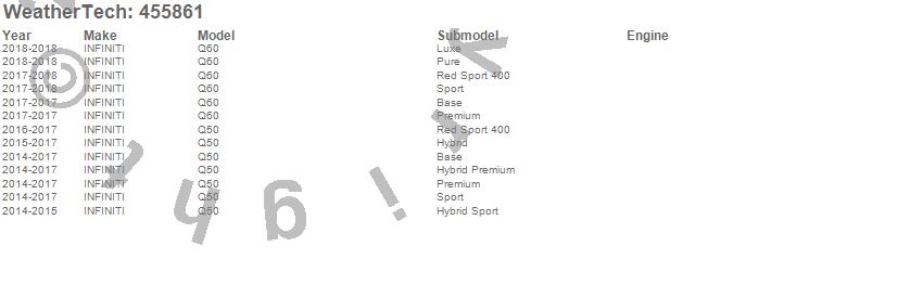 Below is an abbreviated list of applications for the FloorLiner DigitalFit.Q50, Q60, INFINITI, 2018, 2017, 2016, 2015, 2014