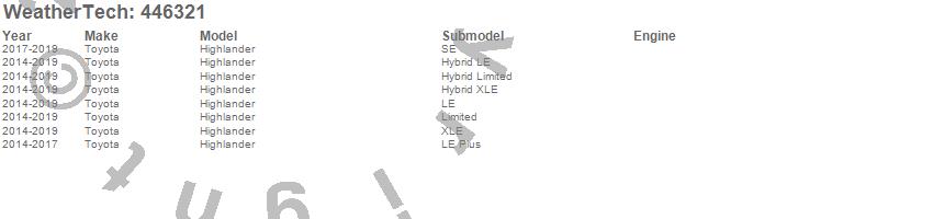 Below is an abbreviated list of applications for the FloorLiner DigitalFit.Highlander, Toyota, 2019, 2018, 2017, 2016, 2015, 2014