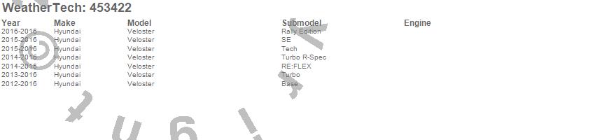 Below is an abbreviated list of applications for the FloorLiner DigitalFit.Veloster, Hyundai, 2016, 2015, 2014, 2013, 2012