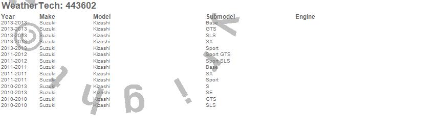 Below is an abbreviated list of applications for the FloorLiner DigitalFit.Kizashi, Suzuki, 2013, 2012, 2011, 2010