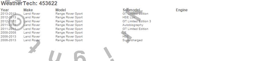 Below is an abbreviated list of applications for the FloorLiner DigitalFit.Range Rover Sport, Land Rover, 2013, 2012, 2011, 2010, 2009, 2008, 2007, 2006